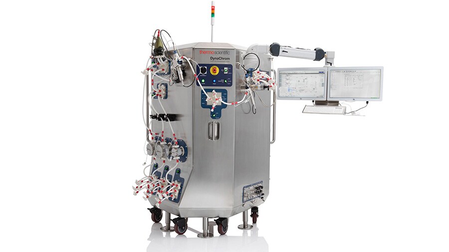 The Thermo Scientific DynaChrom Chromatography System brings innovation, scalability, and robust automation to single-use downstream bioprocessing. It offers modular, single-use fluid transfer assemblies, a configurable system design with expandable features, and well-developed automation software built on an industry standard platform, enabling performance, flexibility, and speed in bioprocessing.